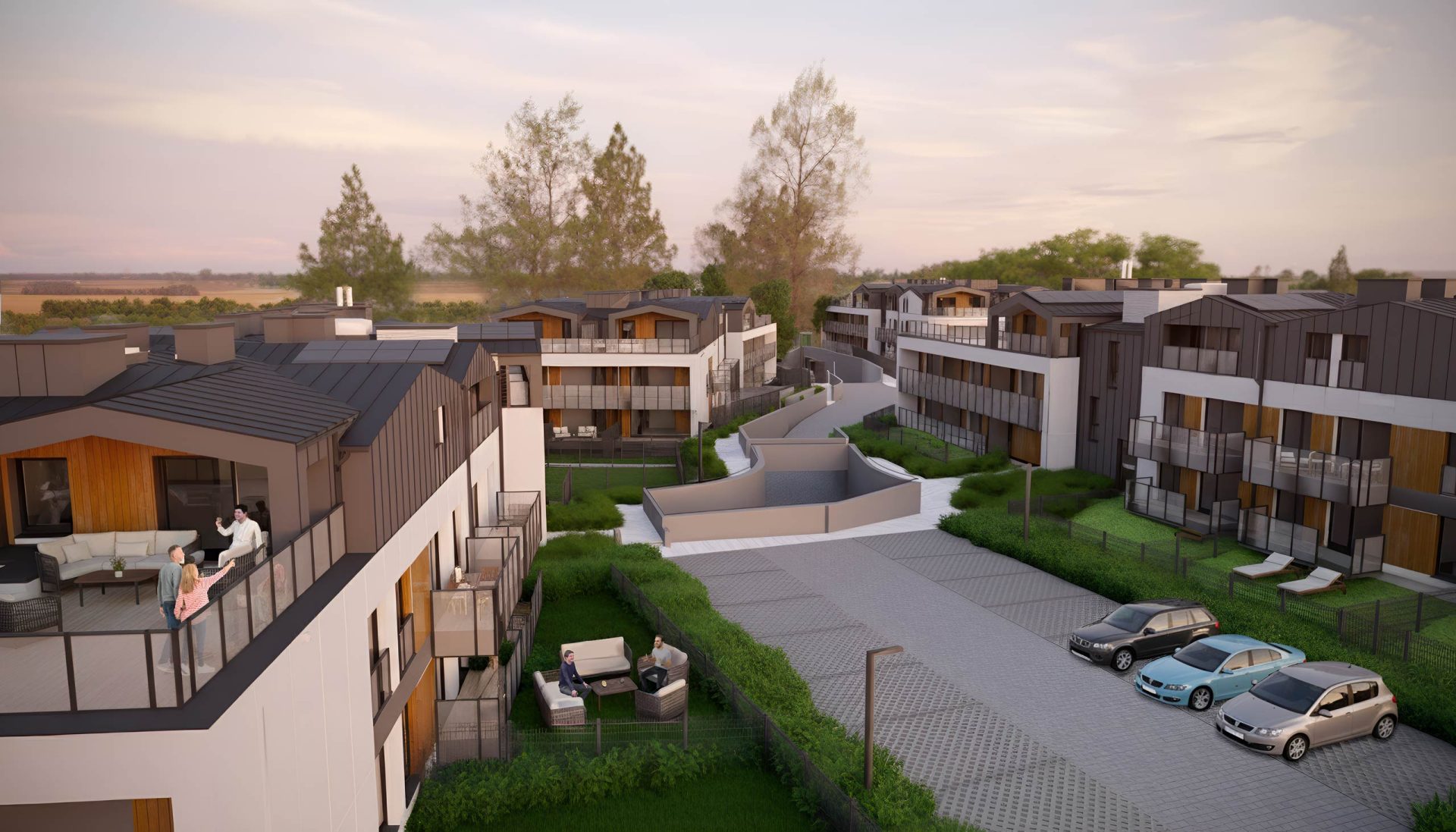 Kameralna inwestycja składa się z czterech trzypiętrowych, nowoczesnych budynków, w których znajduje się jedynie po 31 mieszkań. Projekt wyróżnia się funkcjonalnymi układami oraz dodatkowymi przestrzeniami – prywatnymi ogródkami, przestronnymi tarasami i balkonami. Do dyspozycji Mieszkańców przewidziano elegancką część wspólną oraz bezpieczny plac zabaw dla dzieci.